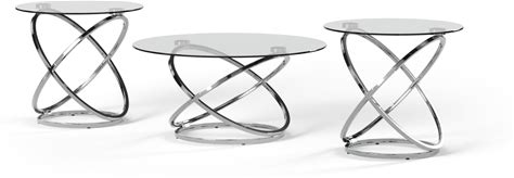 Signature Design By Ashley Hollynyx Contemporary Round 3-Piece Occasional Table Set, Includes Coffee Table And 2 End Tables, Chrome