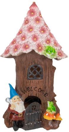 Northlight 14" Solar Lighted Bless Our Home Gnome Tree House Outdoor Garden Statue