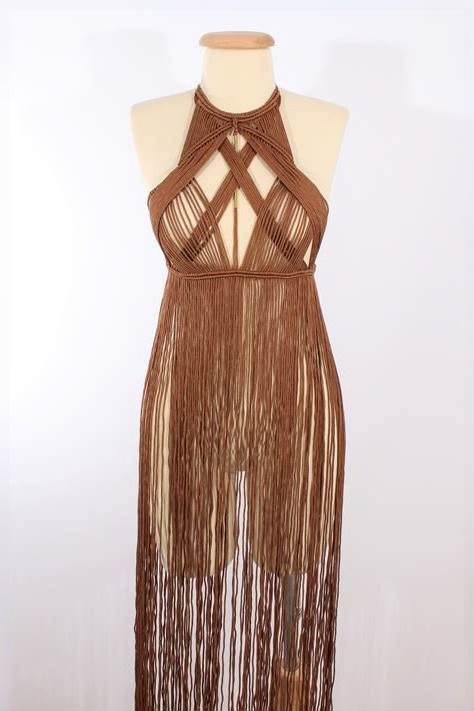 Latest Handmade Art Macrame Dress For Woman, Wedding Dress, Partywear Dresses, Womens Tops, Beach Dress,Long Fringe Dress, Boho Dress