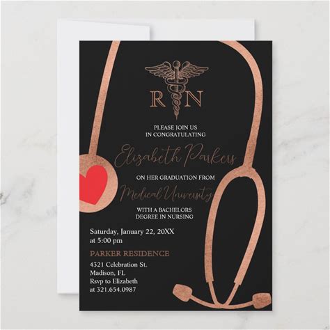 Modern Gold Modern Nursing Graduation Party Invitation