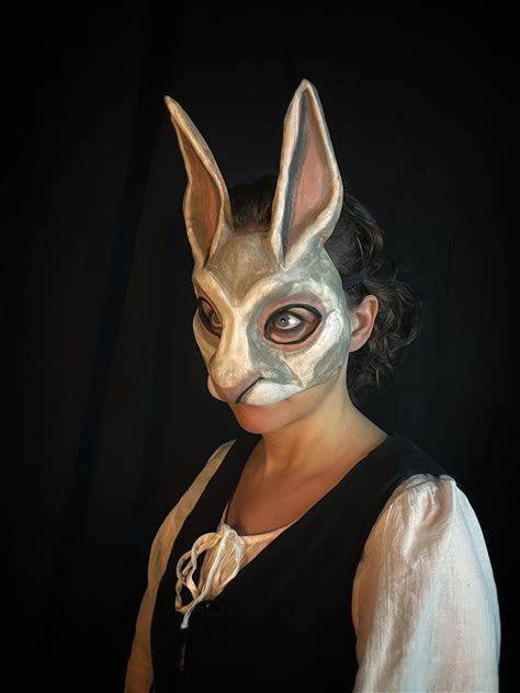 Antique Style Paper Mache Rabbit Mask: Handmade Bunny Costume