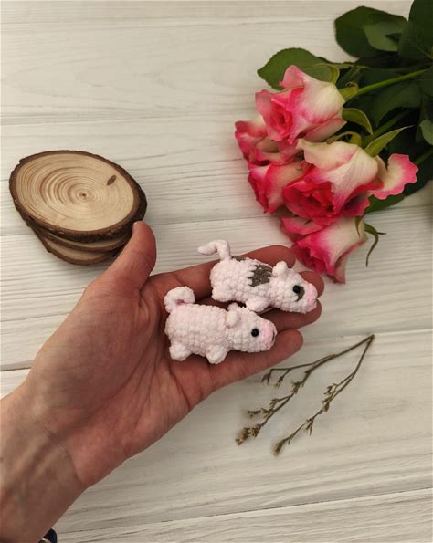 Miniature Plushie Pig Pocket Toy. Tiny Stuffed Cute Plush Desk Animal. Gift For Besty, Friend, Emotional Support. Crochet Mini Figures
