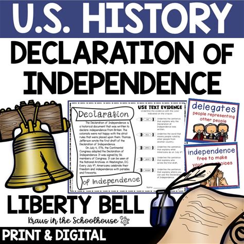 Declaration Of Independence Worksheets | US Government | US History Printables | Liberty Bell | American Symbols | Historical Documents
