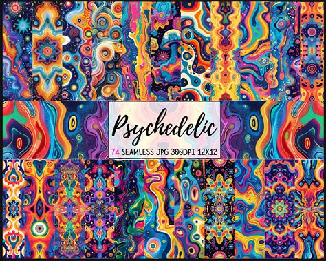Psychedelic Seamless Patterns - 74 Designs - 12X12 Inch - Commercial Use - Colorful Pattern Sublimation Design, Trippy Sublimation - Bundle