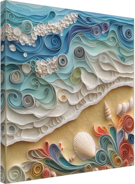 Seashells On The Shore, Paper Quilling Artwork Of Ocean Waves And Beach, Quilled Paper Design Canvas Print, Paperquilling