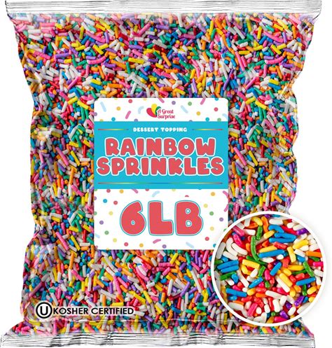 Bulk Rainbow Sprinkles - 6 Lb Baking Topping For Valentines Day - Cake Decorating, Cookies, Cupcakes & Party Desserts
