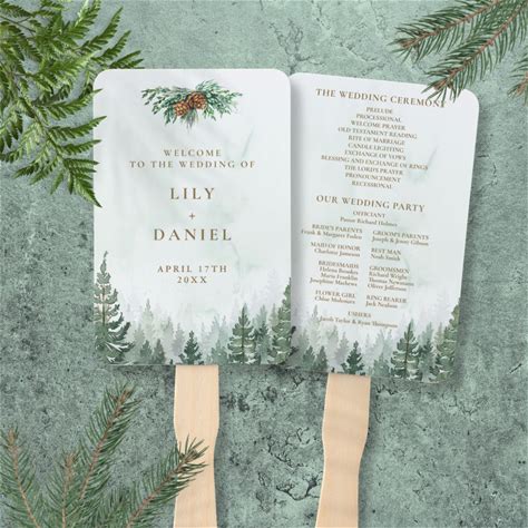 Rustic Watercolor Pine Forest Wedding Program Hand Fan