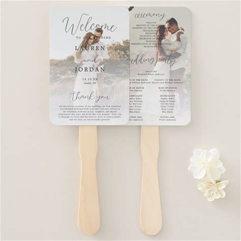 Modern Photo Rustic Brown Wedding Program Fan