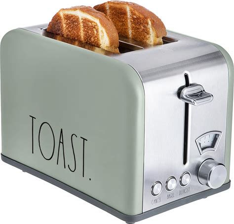 Rae Dunn Toaster, Stainless Steel 2 Slice Square Toaster, Wide Slot With 5 Browning Levels, With Bagel, Defrost And Cancel Options (Sage)