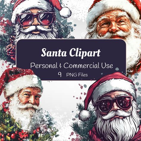 Santa Face Clipart, Christmas Digital Download, Santa Claus Faces Clipart, Christmas Clipart, Commercial Use, Instant Download, Cute Santa