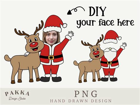 Santa Face Blank Bundle With Reindeer, Add Your Own Photo, Diy Template,Printable Png For Christmas Gift