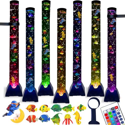 Sensory Bubble Tower Lamp With Bracket - 4 ft Bubble Tube With Fake Fish, 16-Color LED Sensory Light, Tall Bubble Fish Lamp For Sensory Room, Autism &