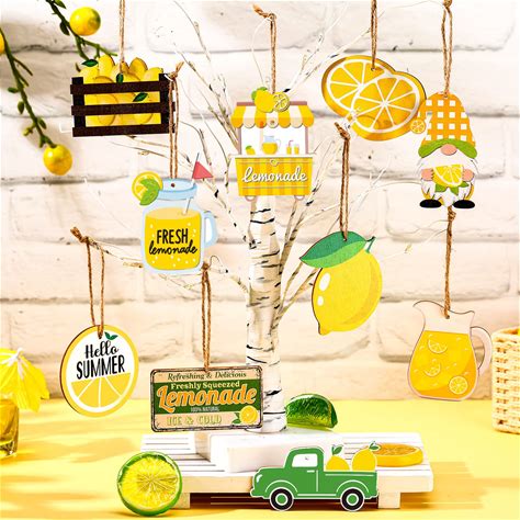 Chunful 30 Pcs Summer Lemon Tree Ornaments Wood Gnomes Lemon Theme Ornaments Yellow Wood Hanging Decoration With String For Home Small Tree Summer