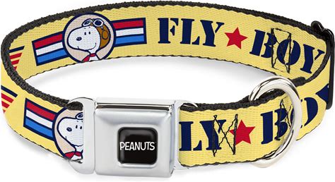Buckle-Down Peanuts Worldwide LLC Peanuts Snoopy Fly Boy Top Dog Flying Ace Dog Collar, Medium: 11 To 16.5-In Neck, 1-In Wide
