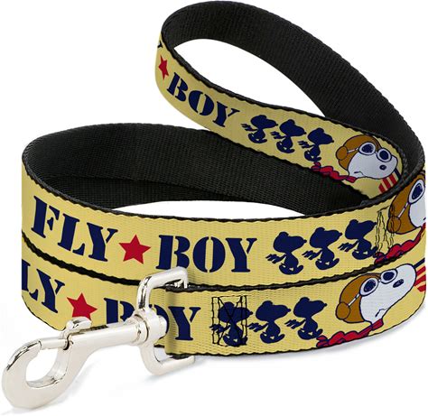 Buckle-Down Peanuts Snoopy Fly Boy Top Dog Flying Ace Polyester Dog Leash, Yellow, 6-Ft Long, 1-In Wide