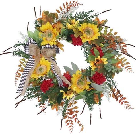 Wreaths For Front Door 240cm Artificial Sunflower Garland Hanging Silk Sunflower Vine Artificial Flowers Garland With Green Leaves For Wedding Party Home Wreaths