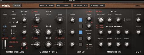 AIR Mini D Synthesizer Plug-In Virtual Instruments Virtual Analog Synthesizer Plug-In With 8 Oscillator Shapes, Pitch Detune, Ladder-Style Filter,