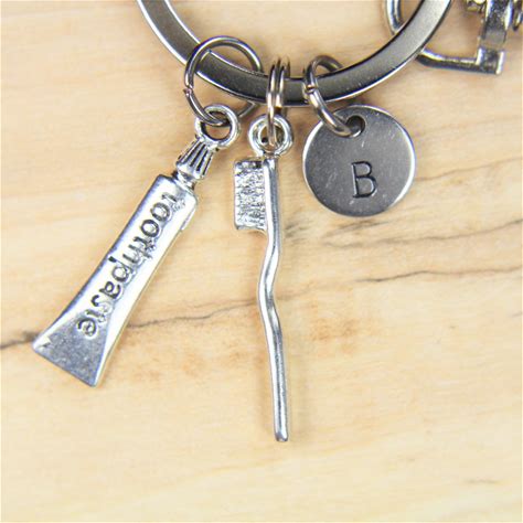 Silver Toothpaste And Toothbrush Tooth Keychain Dental Keychain Personalized Keychain Initial Keychain Initial Charm