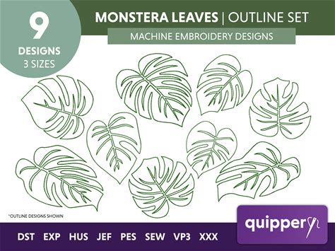 Monstera Leaf Outline Embroidery Design: Tropical Plant Pattern (PES)