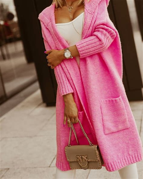 Women's Sweater Cardigan Streetwear Casual Solid Color Cable Hooded Pocket Knitted Long Sleeve Long Tops Knit Daily Going Out Weekend White Pink Fall