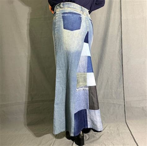 Handmade Upcycled Denim Skirt Patchwork Stretch Denim Long Skirt NBB49