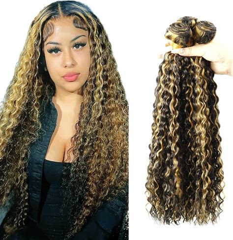 Niciitysi P1B27 Kinkycurly Bundles Human Hair 24 26 28 Inch Double Weft Brazilian Hair Extensions Ombre Two Tone Black And Honey Blonde Curly Wave
