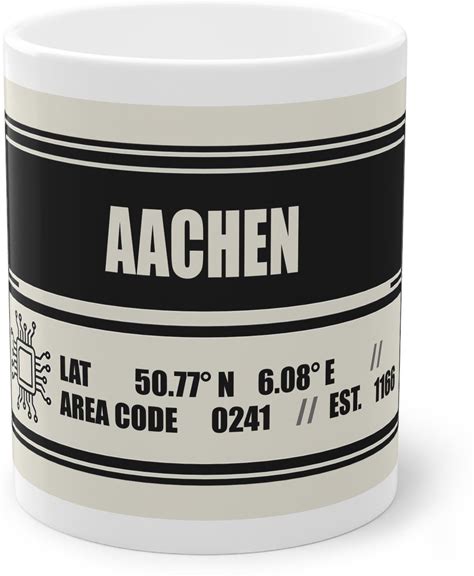 AACHEN Mug Coordinates & Area Code 0241 | Minimalist Design Gift | Office Mug Architecture | Urban Style Souvenir Modern