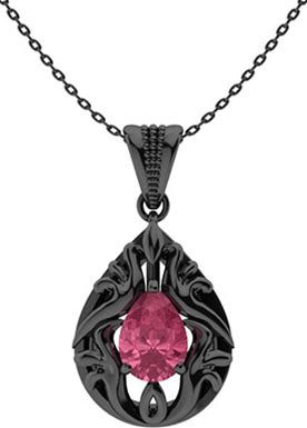 Pink Sapphire Unique Pendant In 18K Black Gold| Pear-Cut Unique Necklace| Unique Necklace| Noah