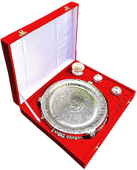 Handcrafted German Silver Puja Thali Set With Velvet Box: Wedding Gift, Housewarming Gift , Diwali Gift, Diwali Return Gift, Birthday Gift