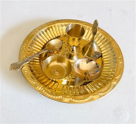 Brass Pooja Thali / Worship Tray / A Complete Ritual Prayers Offering Tray/ Set Contents 7 Peice