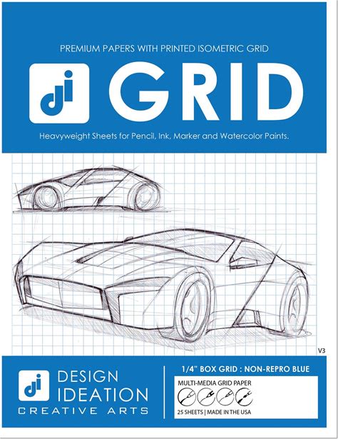 Design Ideation Brand Grid Paper : Multi-Media Grid Paper For Pencil, Ink, Marker And Watercolor Paints. 1/4" Box Grid. (25 Sheet Pack.) (Non-Repro