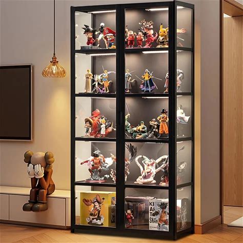 5-Shelf Glass Display Cabinet, Display Cabinet With Two Door, Fast Installation, Floor Standing Curio Cabinets Bookshelf Display Case For Living Room Bedroom, Trophy Case With Handlelock, White(Black)