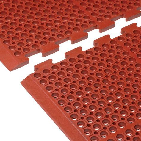 Cactus Mat 4420-REWB VIP Duralok 3' 2" X 5' 1" Red End Interlocking Grease-Resistant Anti-Fatigue Anti-Slip Floor Mat With Beveled Edge - 3/4" Thick