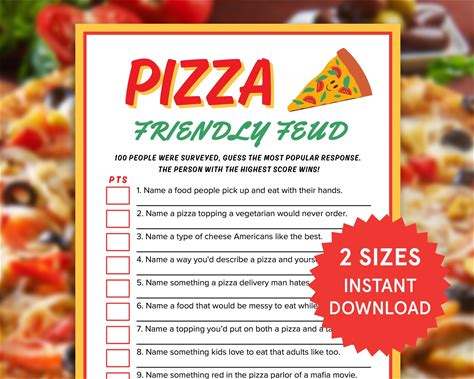Pizza Family Feud Game Printable Pizza Party Game For Kids Adults Pizza Themed Birthday Games Friendly Feud Family Game Night Pizza Crafts