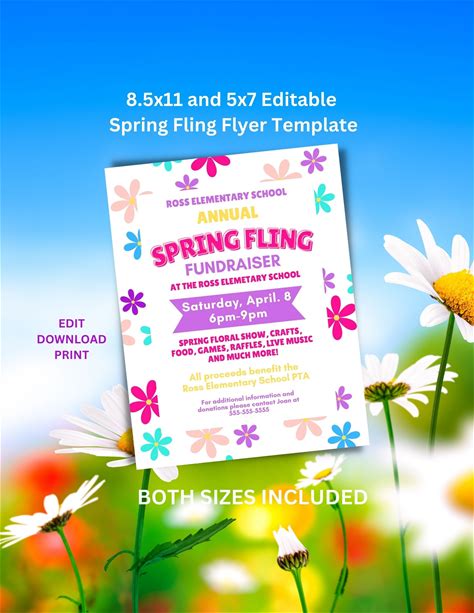 Editable Spring Fling Flyer Template, PTO Fundraiser (Digital Download)