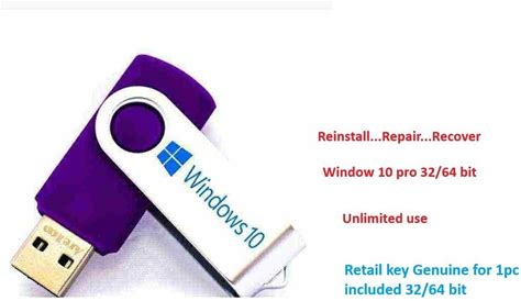Reinstall,Repair,Recover..Window 10 Pro 32/64 Bit USB,New &Genuine Retail Key