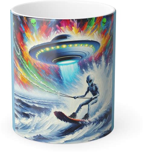 Alien Wake Rider Color Morphing Mug - UFO Waterskiing Adventure