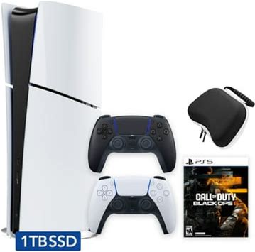 Playstation 5 Slim Digital 1TB SSD Call Of Duty Black Ops 6 Console With Two Controllers, White And Midnight Black Dualsense And Hard Shell Protective
