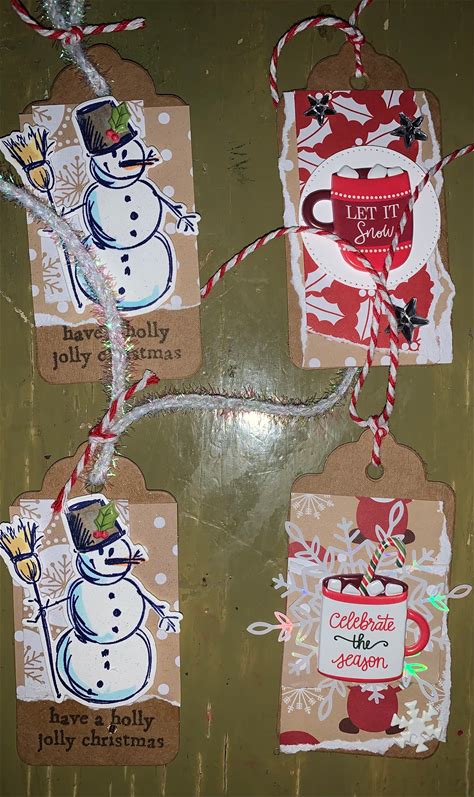 Stampin'up Lot Of 4 Christmas Tags Handmade Stampin'up Tim Holtz