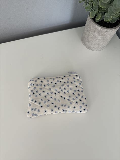 Handmade Dainty Blue Flowers Quilted Coin Pouch, Coin Purse, Coin Holder, Wallet, Cute Gift, Quilted Wallet, Card Holder, Change Purse