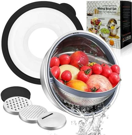 4-1 Colander with Mixing Bowl Set - Colander for Kitchen - Strainers a