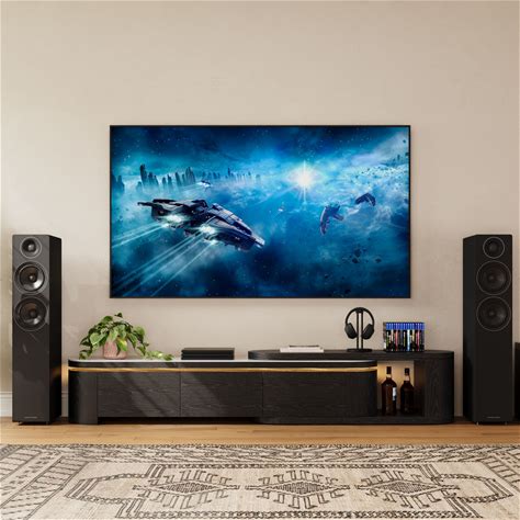 Fox & Friends X Povison - 78.75"-106.3" Mid-Century Modern Extendable TV Stand With LED Lights, Glossy Sintered Stone Tabletop Media Console,Black &