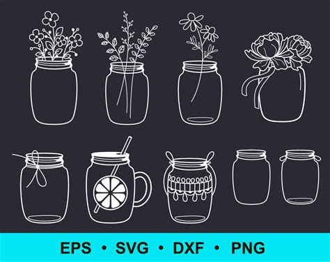 Floral Jar Outlines Vector: SVG, DXF, PNG Clipart