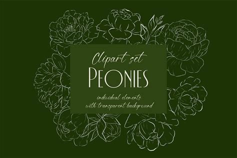 Peonies - Floral Clip Art - Vector Flower Illustration - Clipart Digital Flower Print - Individual PNG -Botanical Line Art