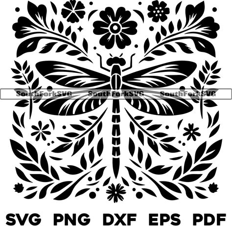 Dragonfly Floral Pattern Svg Png Dxf Eps Pdf | Laser Engrave Cut Print Vector Graphic Clip Art | Instant Digital Download Commercial Use