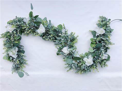 6FT Artificial Eucalyptus Garland with Flowers, 10 White Roses Bab