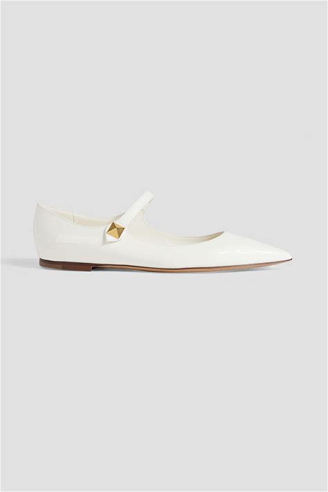 VALENTINO GARAVANI Tiptoe Patent-Leather Point-Toe Flats - Women - White Flat Shoes - EU 38