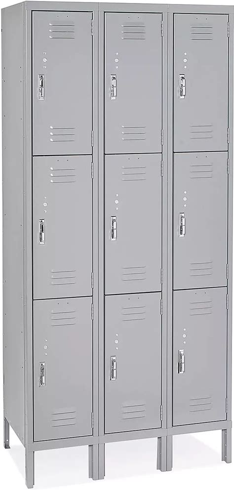 Uline Three Tier Lockers - Assembled, 36X18x72", Gray