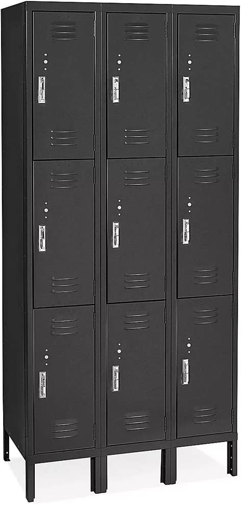 Uline Three Tier Lockers - Assembled, 36X18x72", Black