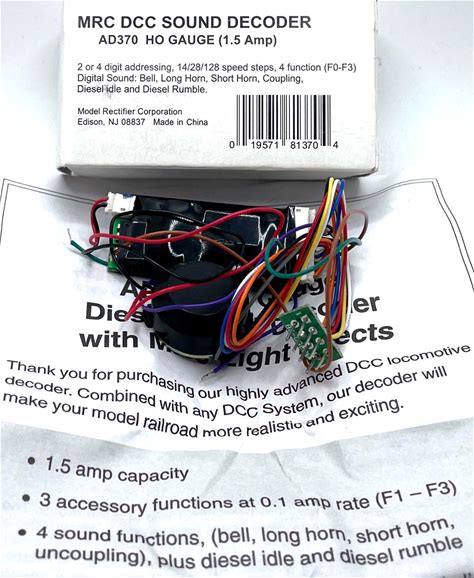 HO MRC AD370 DCC Sound Decoder With MRC Light Effects. MRC. Black. Other Railroads & Trains. 0019571813704.